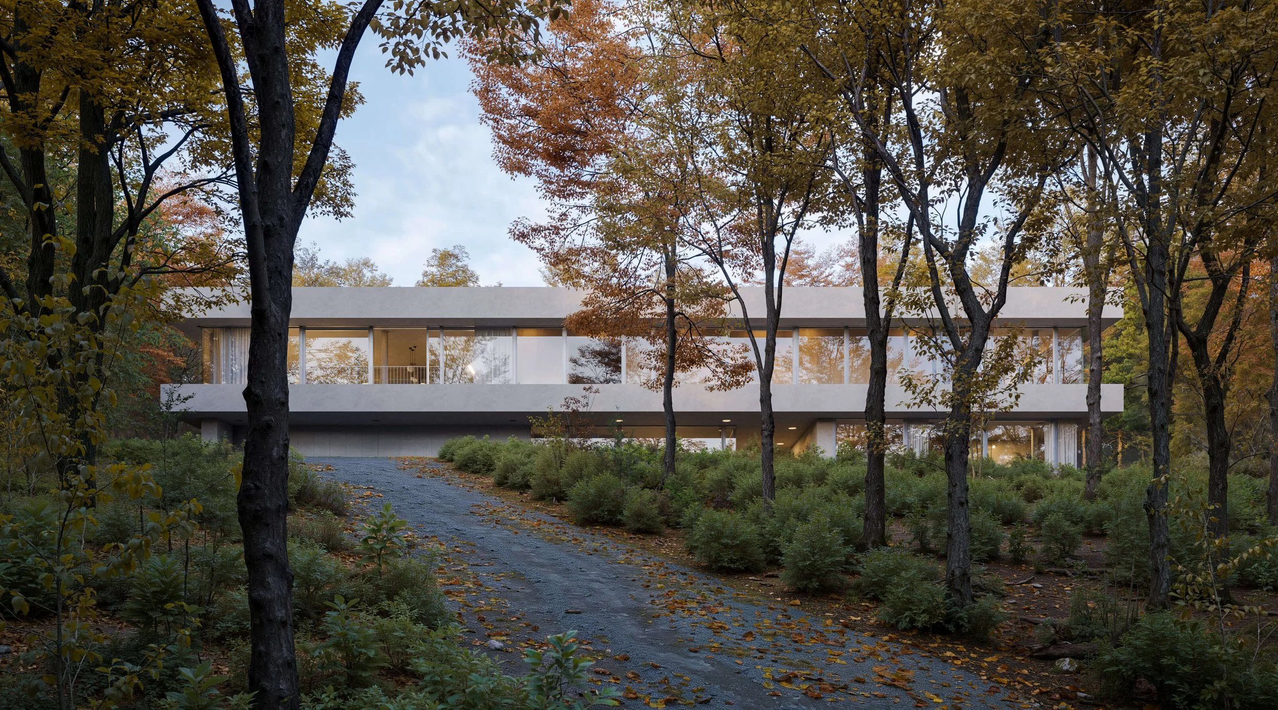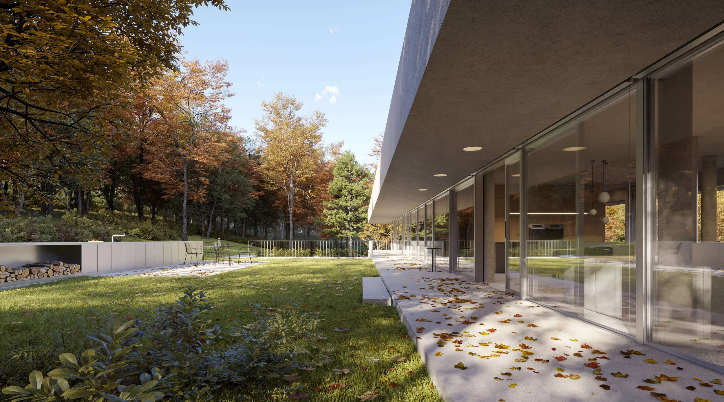 Villa HARM is a contemporary retreat situated in the heart of a protected woodland. Designed to merge with its natural surroundings, the building remains largely hidden from view. Its reflective glass façade mirrors the trees and light, creating a fluid relationship between architecture and forest. The result is a calm, timeless expression of harmony between man-made structure and nature.
